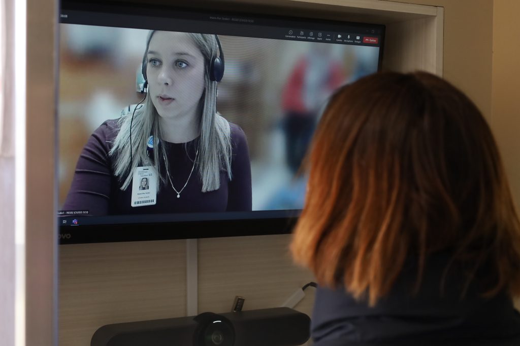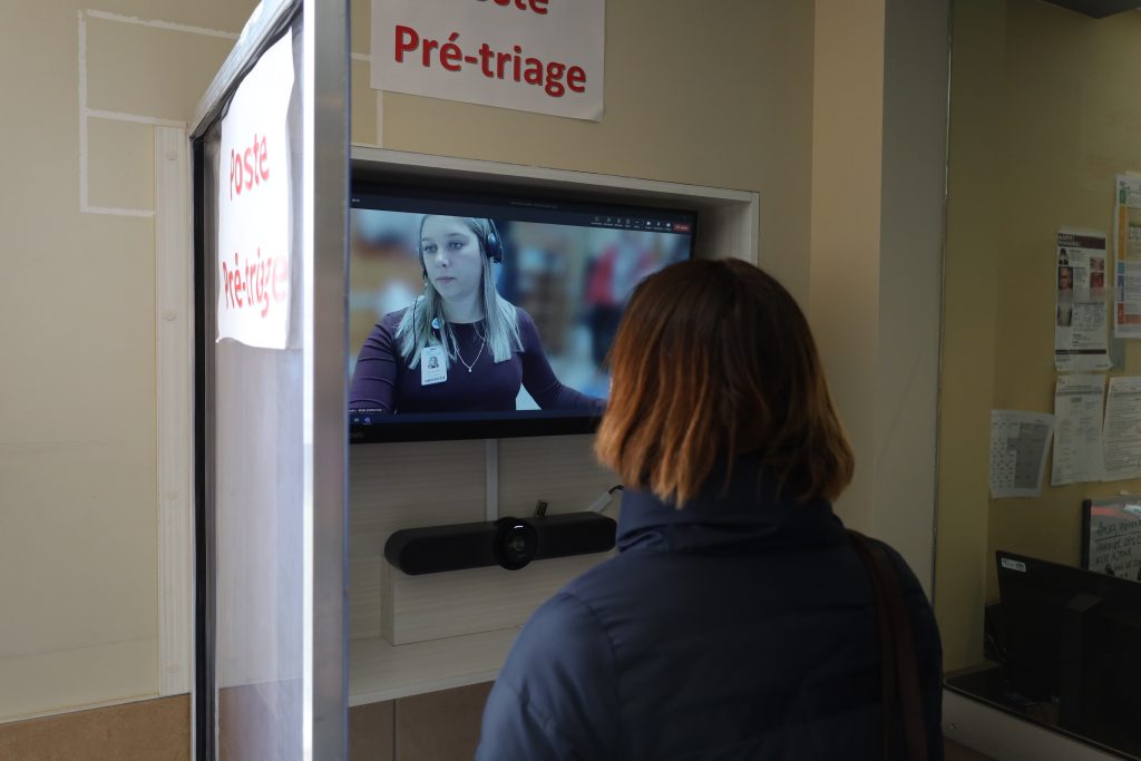 Lorsque le prétriage virtuel est en fonction, un(e) employé(e) accueille les usagers et les dirige vers la station de télétriage en leur expliquant la procédure. Les usagers sont accompagnés tout au long du processus et sont bien orientés. Pour les personnes moins à l’aise avec la technologie, la préposée à l’accueil peut les accompagner.
